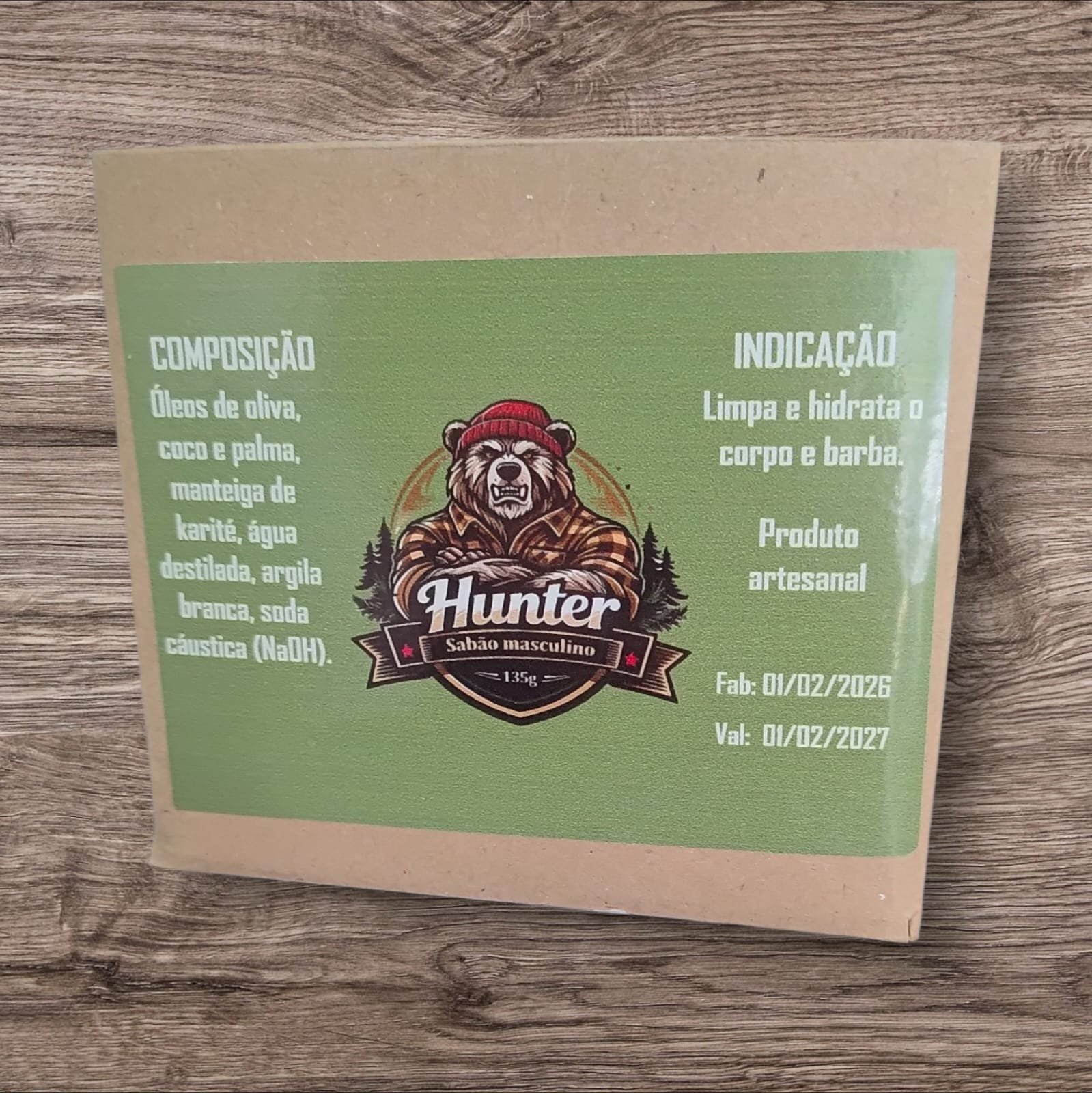 HUNTER sabão artesanal Masculino para homens que pensam grande. Feito com ingredientes selecionados e naturais promovendo uma experiência única de limpeza e hidratação para a sua pele .Temos duas opções de fragrâncias, capim-limão e algas marinhas.Composição : Manteiga de karite, óleos vegetais naturais de oliva extra virgem, coco,palma e argila branca fazendo uma leve limpeza nas impurezas da pele.